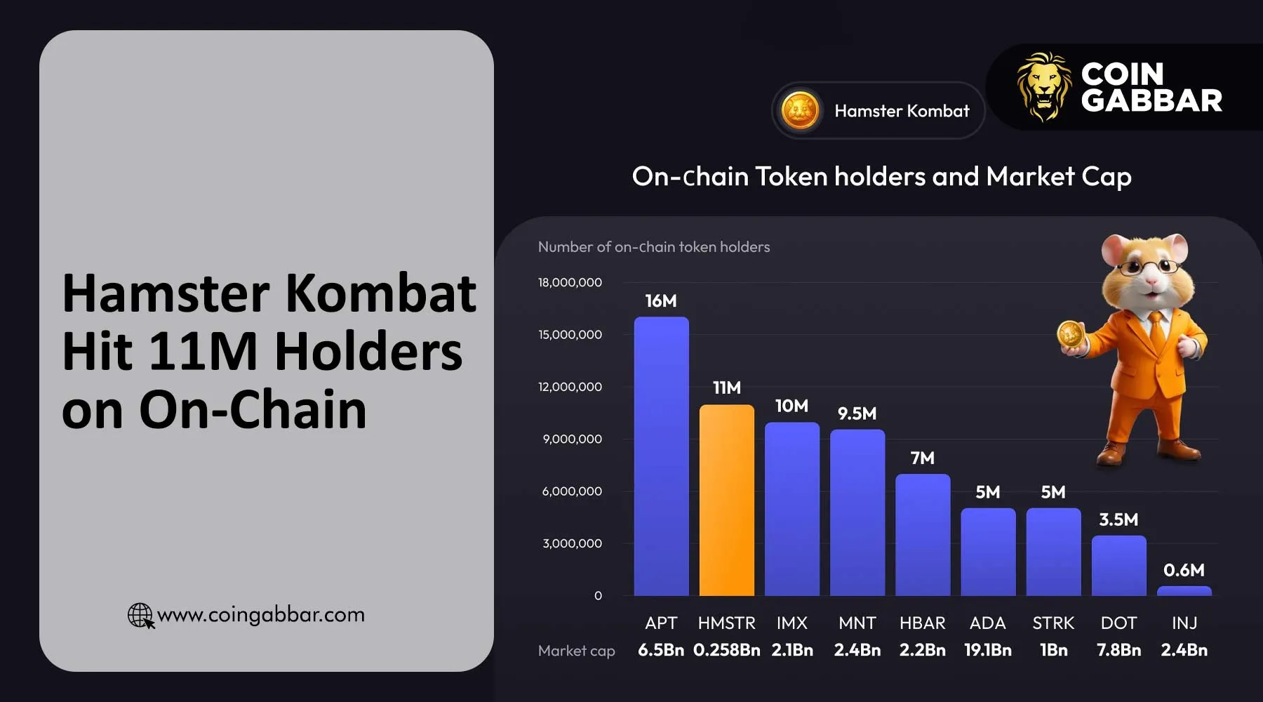 Hamster Kombat continues to capture significant attention in the crypto world as the latest data reveals over 11 million on-chain holders of its $HMSTR token. This milestone places the popular Hamster Kombat mini-game and its token in a competitive spot among leading blockchain projects.