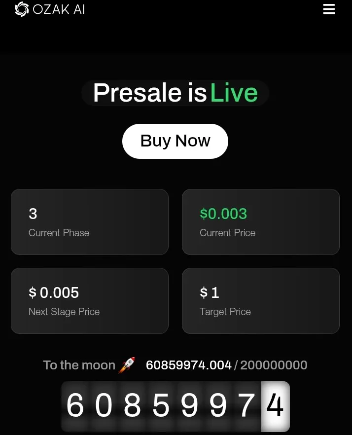 The 3rd stage of the Ozak AI presale is going on, and the project is already making waves in the crypto community. With an impressive $700K raised so far, Ozak AI tokens are priced at just $0.003 each, with the next stage price set at $0.005. This early-stage opportunity is poised for significant growth, with projections suggesting that the token could reach $1 by 2025.