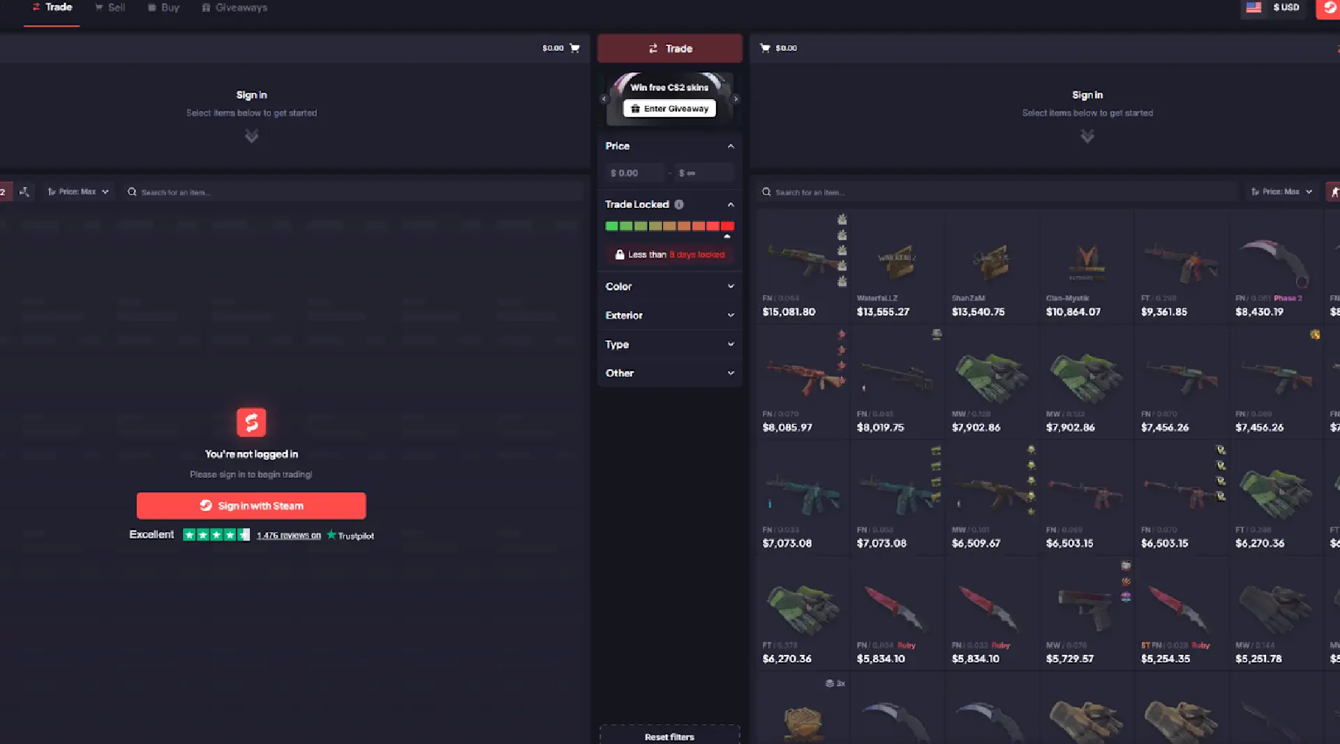 1. Log in to the trading platform using your Steam account credentials.