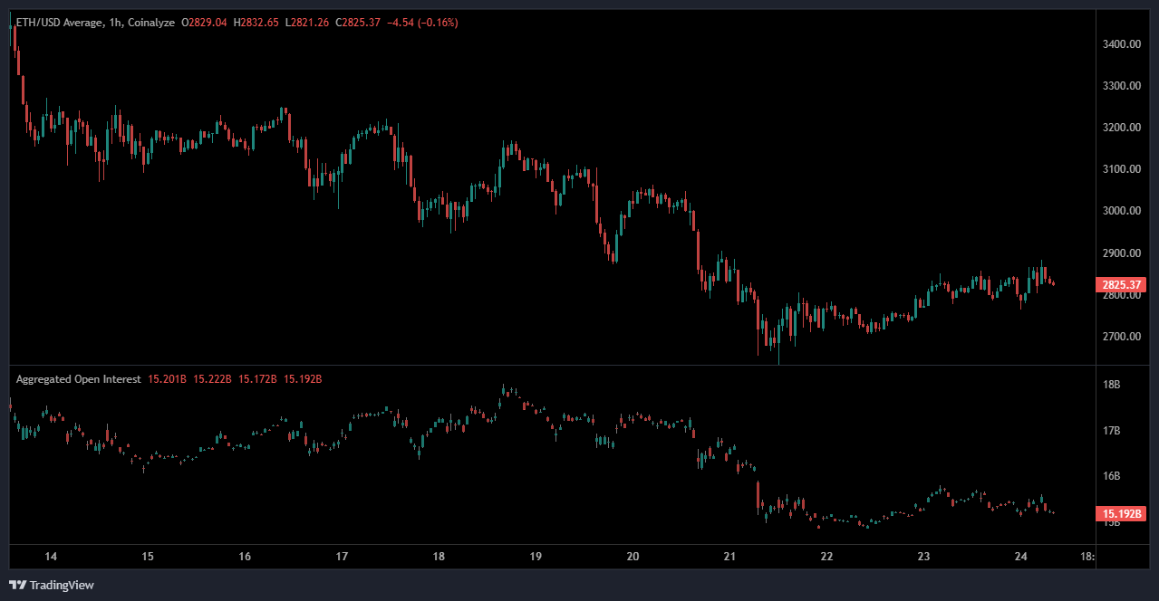 Ethereum stabilizes near $2,823 after a multi-week decline from $4,800, with price consolidation forming around key support. Market participation remains cautious, highlighting early signs of equilibrium, while traders watch for potential short-term recovery or deeper pullbacks.