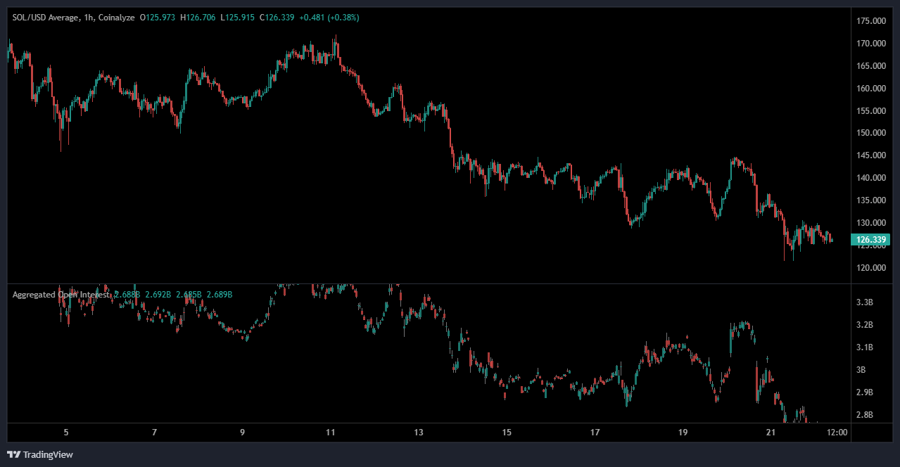 Solana price reflects reduced buying interest and cautious trading behavior. The token has steadily declined from highs near $170 to levels around $126, with multiple failed recovery attempts signaling persistent selling pressure. Participants appear hesitant to initiate new positions amid this downward momentum.