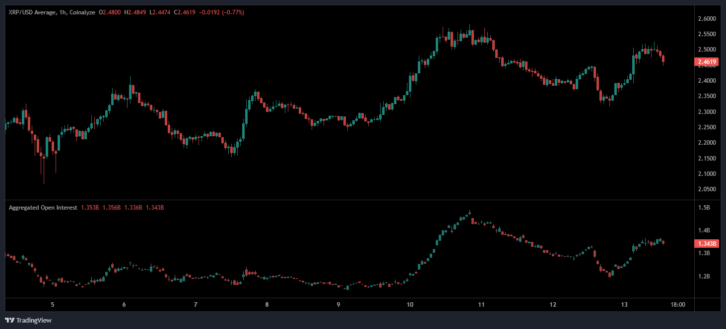 Aggregated open interest has been steady at $1.34B after jumping to an approximate of $1.45B and this indicates less leveraged activity as traders make profits.