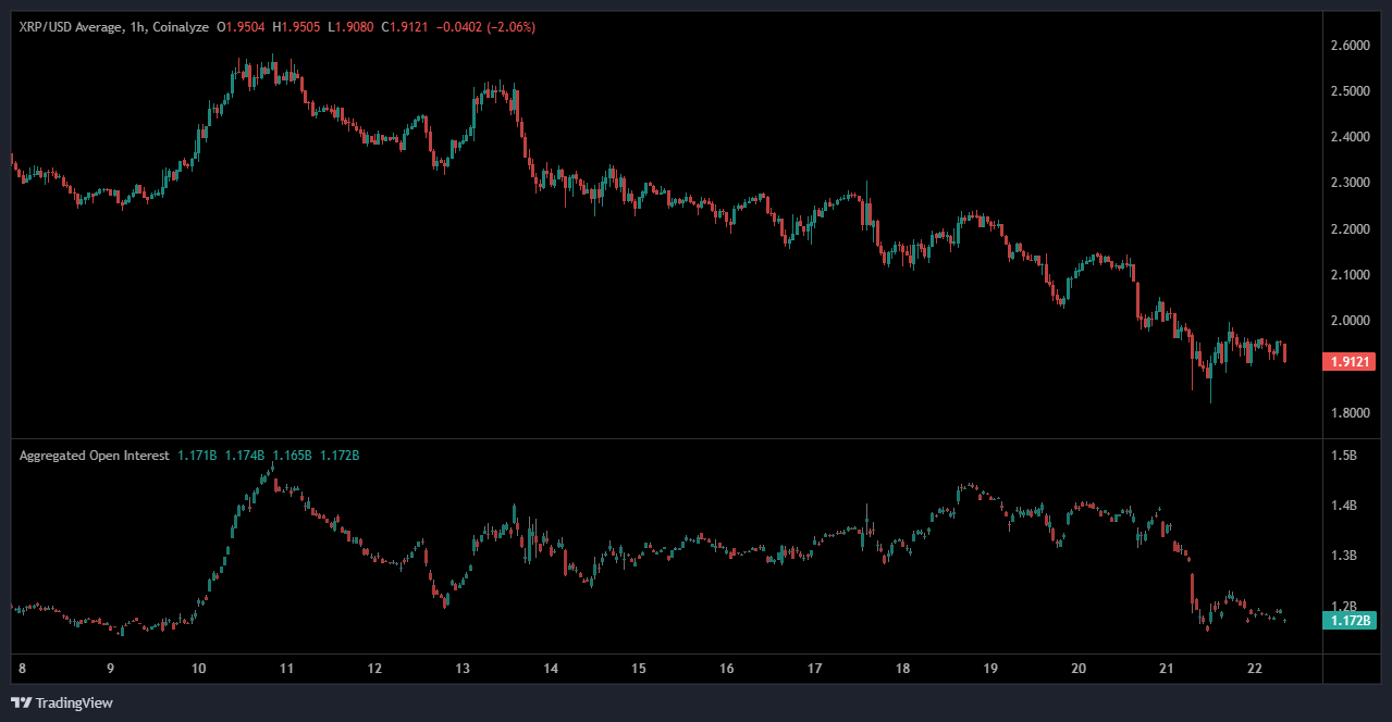 XRP Price Prediction analysis highlights significant derivatives pressure as open interest continues to decline sharply.